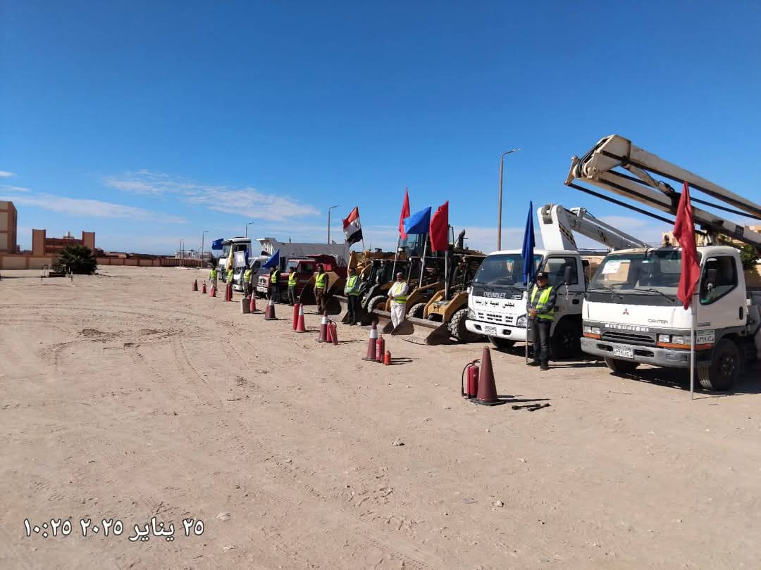 وقد أوضح رئيس المدينة ، أن اصطفاف المعدات يشارك فيها سيارات ومعدات من الحمله الميكانيكية بمدينه أبوزنيمة سيارات شركه مياه الشرب والصرف الصحي بابوزنيمه وقطاع الاسعاف لابوزنيمه وشركه سيناء للمنجنيز
