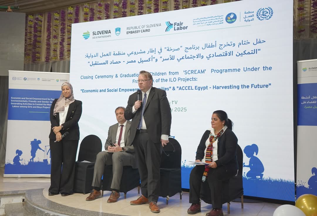 اختتمت اليوم منظمة العمل الدولية فعاليات مشروع “التمكين الاقتصادي والاجتماعي للأسر من خلال أنشطة مدرة للدخل صديقة للبيئة، ومستجيبة للنوع الاجتماعي للقضاء على أسوأ أشكال عمل الأطفال بين البنات والأولاد”، الممول من حكومة سلوفينيا، بحضور ممثلي منظمة العمل الدولية بالقاهرة، وسفارة سلوفينيا فى القاهرة Veleposlaništvo Slovenije v Kairu، ومؤسسة العمل العادل (Fair Labor Association)، ووزارة التضامن الاجتماعي، والأزهر الشريف، والمجلس القومي للطفولة والأمومة.
