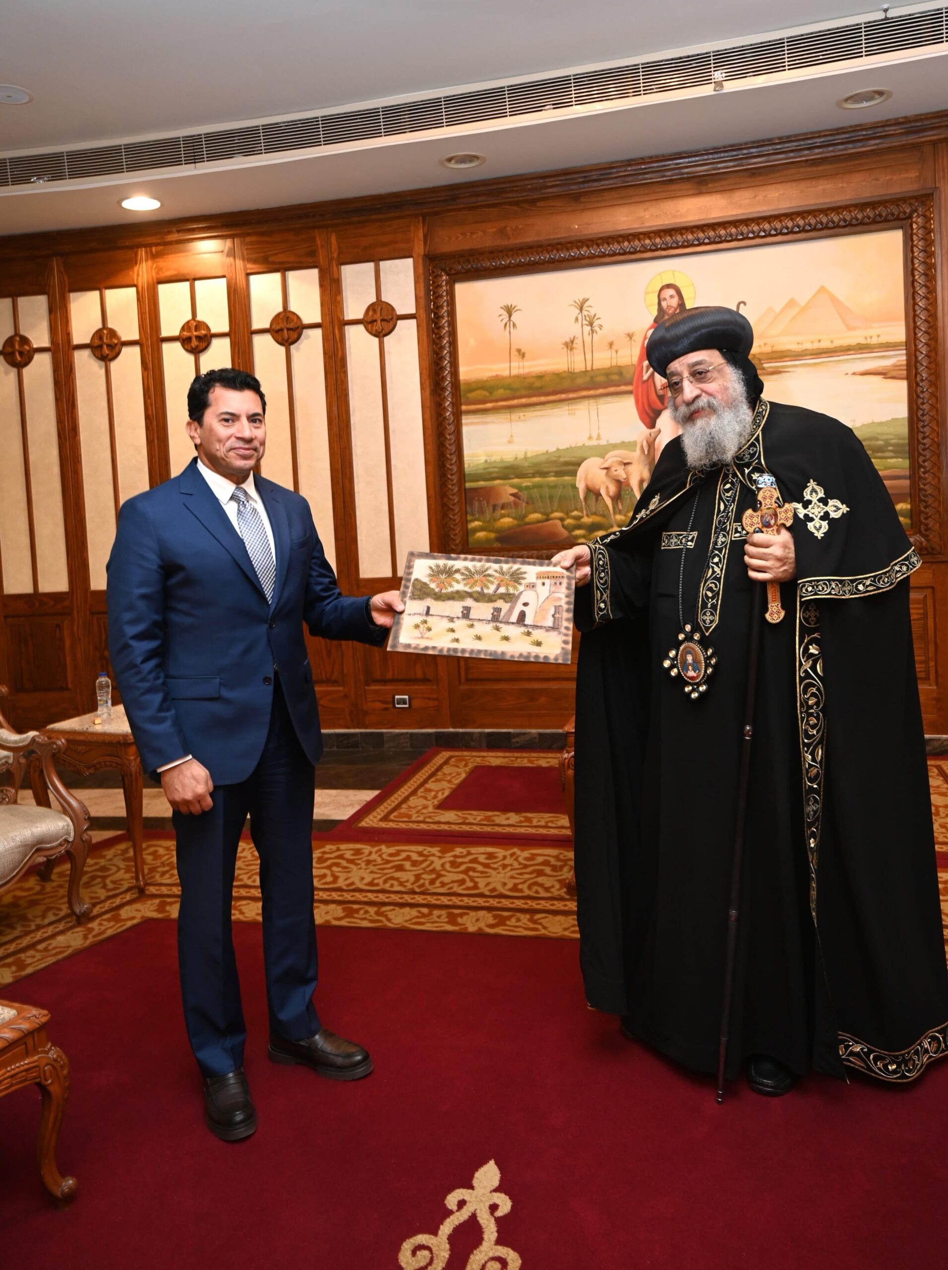 البابا تواضروس الثاني يستقبل وزير الشباب والرياضة ووفد الدبلوماسية الشبابية بمقر الكاتدرائية بالعباسية