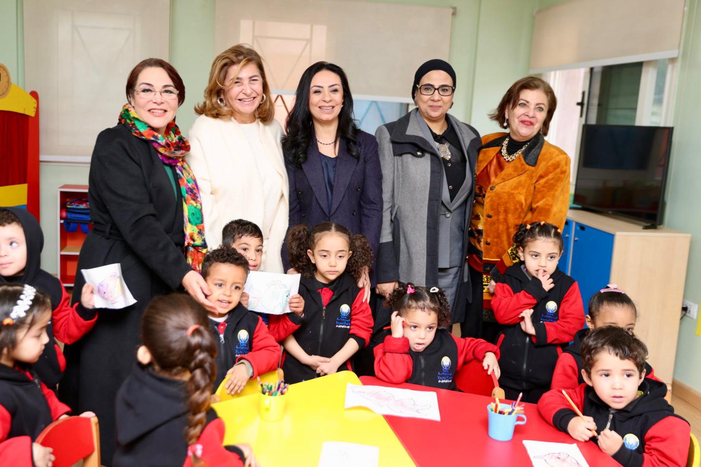 وعقب ذلك تفقدت المستشارة أمل عمار والدكتورة مايا مرسي قاعات الحضانات التي تديرها جمعية خير وبركة والمرأة الجديدة داخل المجمع وأطلعتا على الخدمات والأنشطة التي تقدم للأطفال وكذلك أسرهم فضلا عن الإطلاع على دورة تدريبية للميسرات وذلك في إطار برنامج تنمية الطفولة المبكرة الذي تنفذه الوزارة