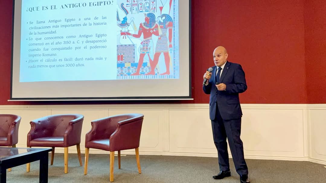 Durante su exposición, el Embajador resaltó los hitos más representativos de la civilización faraónica y su impacto en la evolución de la humanidad a lo largo de la historia. Asimismo, analizó las raíces de las distintas crisis en Medio Oriente y el papel histórico de Egipto en la región, destacando sus esfuerzos continuos para fomentar la paz, la seguridad y la estabilidad hasta la actualidad.