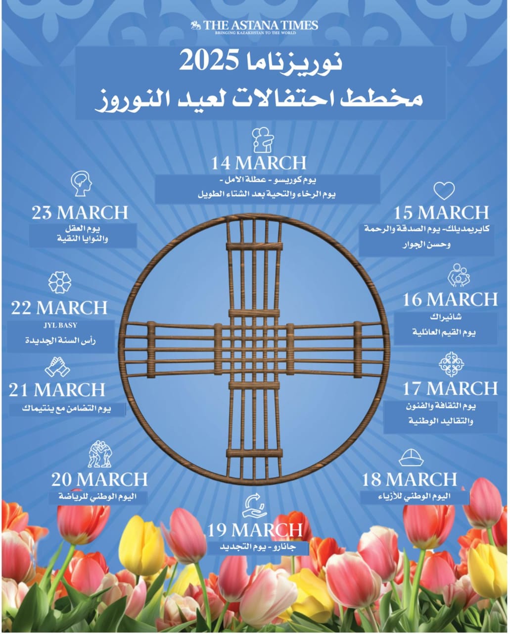 في كازاخستان، يُحتفل بقدوم الربيع بواحدٍ من أعزّ وأهمّ احتفالات الأمة تاريخيًا، وهو نيروز. هذا العيد العريق، الذي يُحتفل به في جميع أنحاء آسيا الوسطى والعالم التركي الأوسع، ليس مجرد تغيّر موسمي، بل يُمثّل نهضةً ووحدةً واستمراريةً ثقافيةً. بجذورٍ في العادات الفارسية والتركية العريقة، يتماشى نيروز مع الاعتدال الربيعي، عندما يتوازن ضوء النهار والظلام، مُشيرًا إلى صحوة الطبيعة وبداية دورةٍ جديدة. وبعيدًا عن رمزيته الموسمية، يُمثّل هذا العيد فرصةً للمجتمعات لتوطيد أواصرها، وتكريم التقاليد، واحتضان قيمٍ كالكرم والوئام وحسن النية.