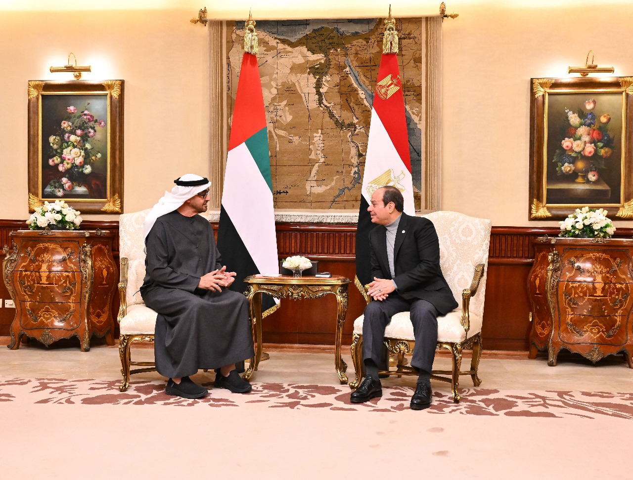 حيث أقام السيد الرئيس المصري مأدبة إفطار تكريماً لسمو الشيخ محمد بن زايد، تم خلالها التأكيد على قوة العلاقات المتميزة بين البلدين الشقيقين مصر والامارات، وبحث سبل تعزيز التعاون في مختلف المجالات، بما يحقق تطلعات وطموحات الشعبين المصري والإماراتي الشقيقين.