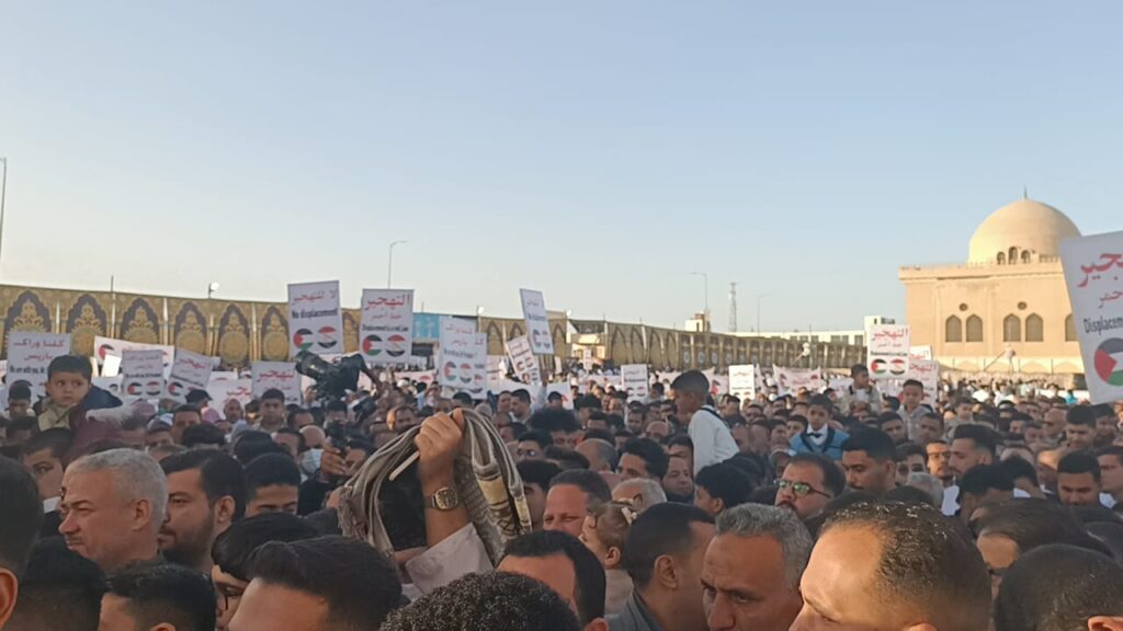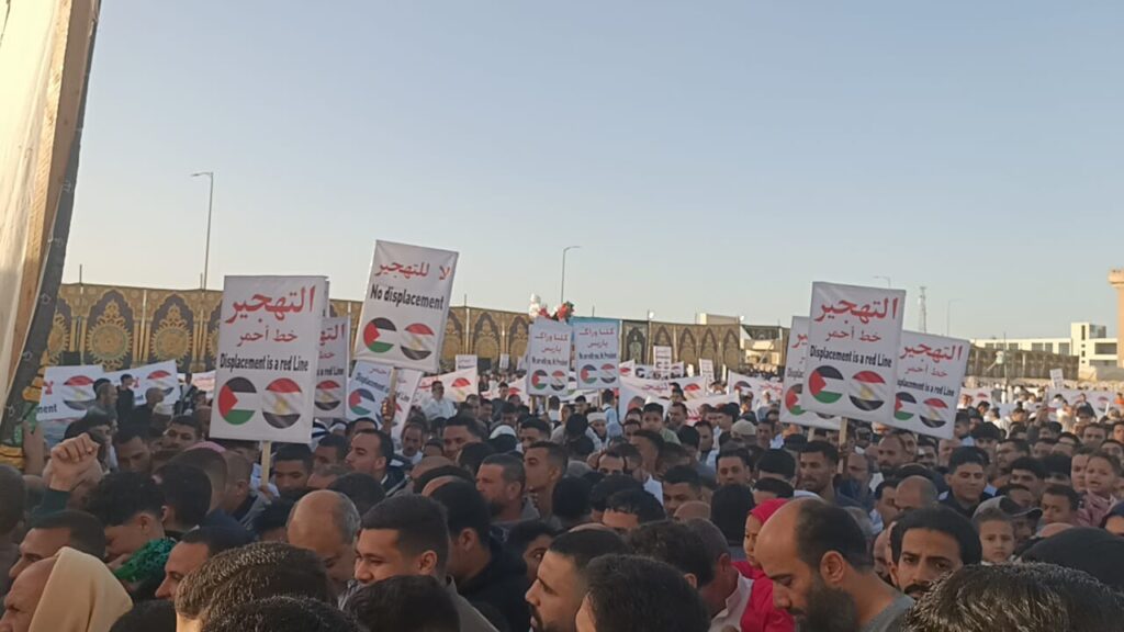 نظم الآلاف من أهالى محافظة المنوفية، وقفات احتجاجية لرفض تهجير الفلسطينيين من بلادهم، وتصفية القضية الفلسطينية، رافعين لافتات، لا للتهجير، لا لتصفية القضية الفلسطينية.