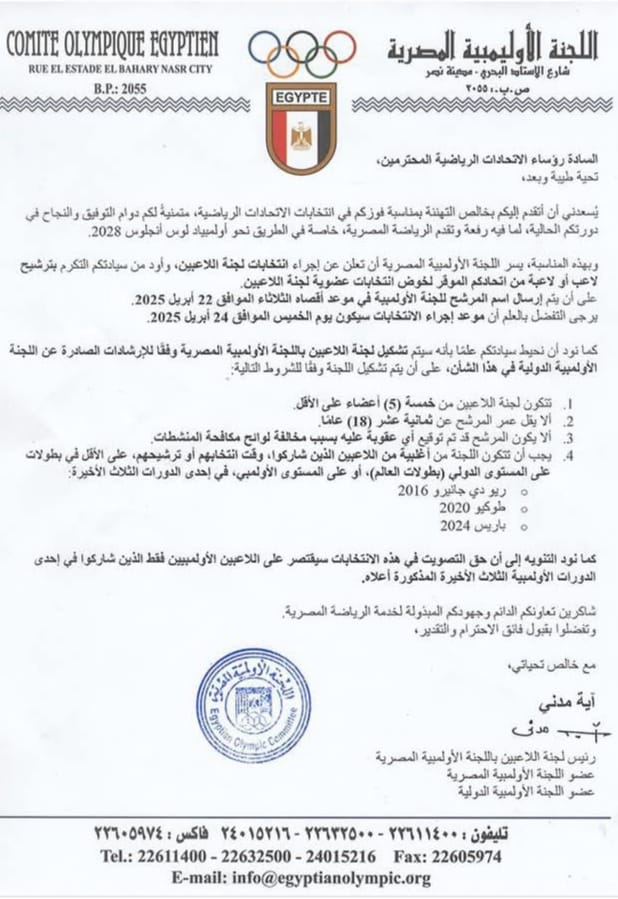 وتقام لأول مرة في تاريخ اللجنة الأولمبية المصرية انتخابات لجنة اللاعبين التي تتولى البطلة الأولمبية أية مدني رئاستها. بوست سوشيال مميز جدا مقترح