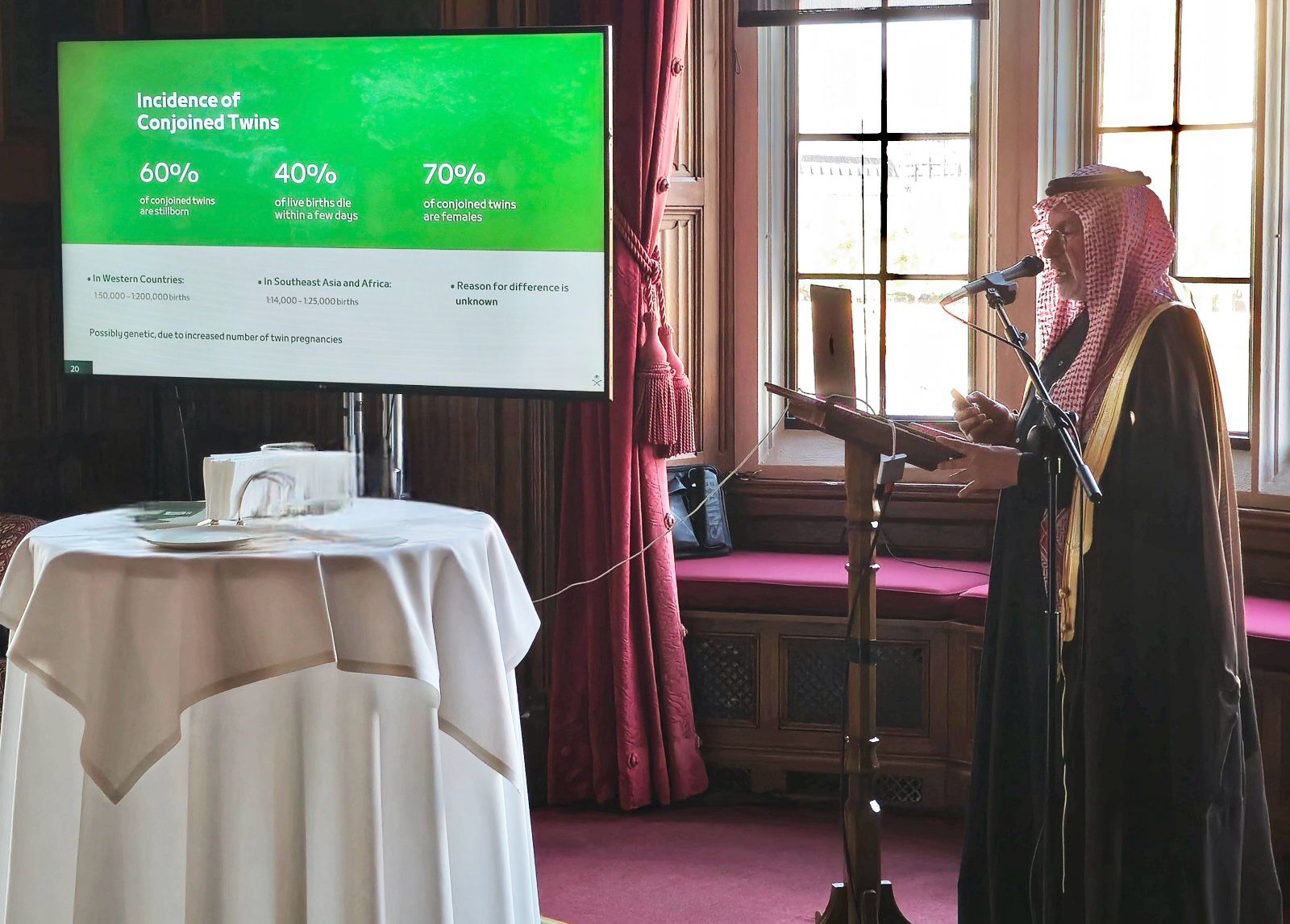 ونوّه بالبرنامج السعودي للتوائم الملتصقة الفريد من نوعه على مستوى العالم، إذ يستقبل التوائم الملتصقة والطفيلية من شتى أنحاء المعمورة، ويتكفل بجميع نفقات عملية فصلهم وعلاجهم وتأهيلهم لما بعد العملية، إلى جانب تكاليف النقل واستضافة التوائم وذويهم طوال فترة الرعاية الطبية، موضحًا أن البرنامج تمكن منذ عام 1990م حتى الآن من دراسة 149 حالة من 27 دولة، وأجرى 62 عملية فصل توأم ملتصق وطفيلي تكللت جميعها بالنجاح -ولله الحمد-، متطرقًا إلى بعض المبادرات المنفّذة، كالمنصات الإغاثية والتطوعية والتوثيق والتسجيل الدولي، مثل: منصة المساعدات السعودية، ومنصة المساعدات المقدمة للاجئين في المملكة، ومنصة التطوع الخارجي، ومنصة التبرع الإلكترونية “ساهم”.