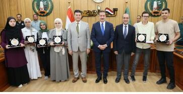 وسلم محافظ المنوفية الطلاب الأوائل شهادات تقدير ومكافآت مالية ودرع المحافظة تقديراً لتفوقهم وتميزهم العلمي وحصدهم مراكز متقدمة على مستوى الجمهورية، معرباً عن بالغ سعادته وفخره بتصدر محافظة المنوفية وحصولها على 6 مراكز متقدمة في الشهادة الثانوية بما يعكس مدى اهتمام وحرص أهالي المحافظة بأهمية التعليم مما جعل المنوفية تحتل دائماً الريادة والصدارة بين محافظات الجمهورية في تفوق أبنائها.