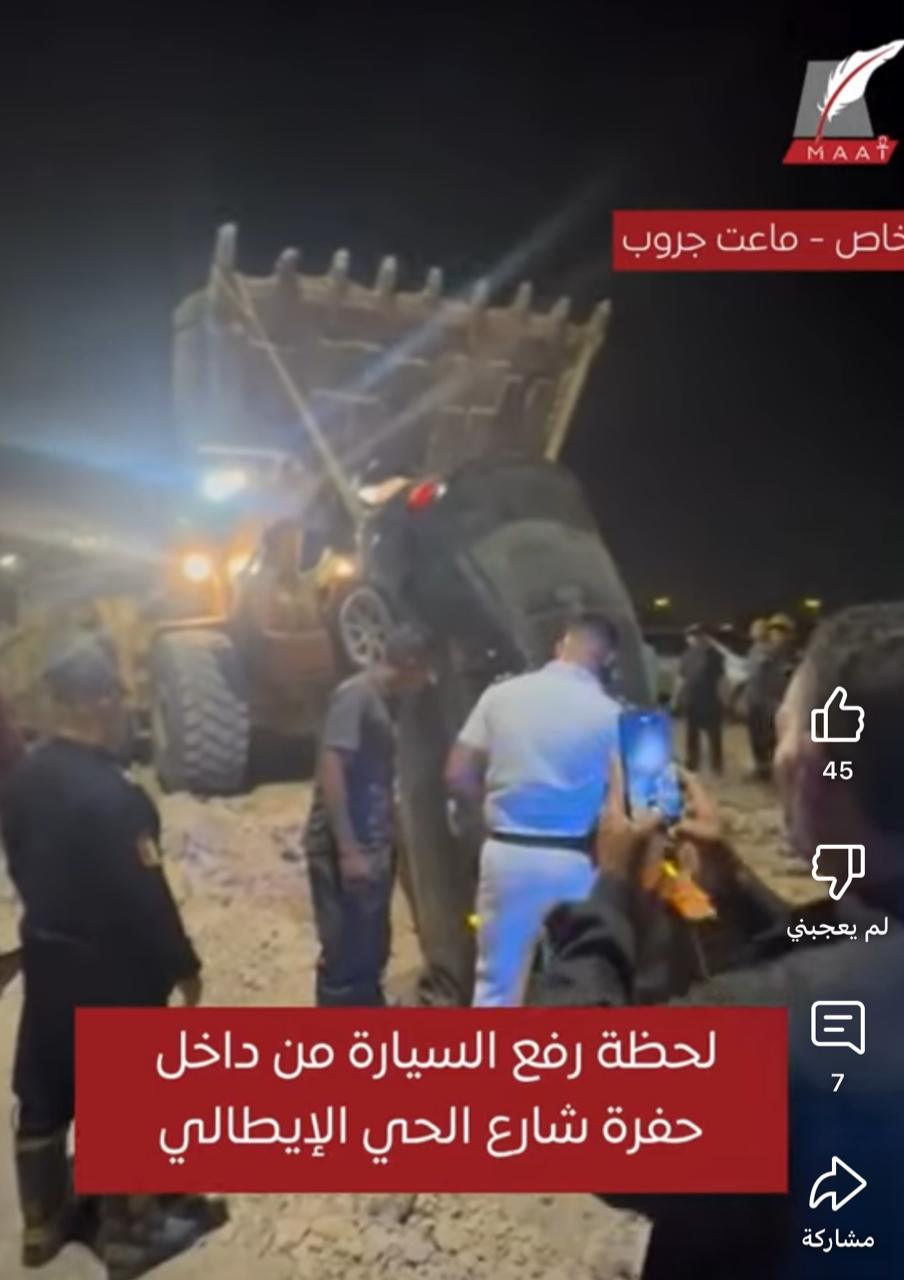 تدخل عاجل من الشرطة والحماية المدنية بعد سقوط سيارة في حفرة بحدائق أكتوبر.. وفيديو حصري يوثق لحظة الإنقاذ