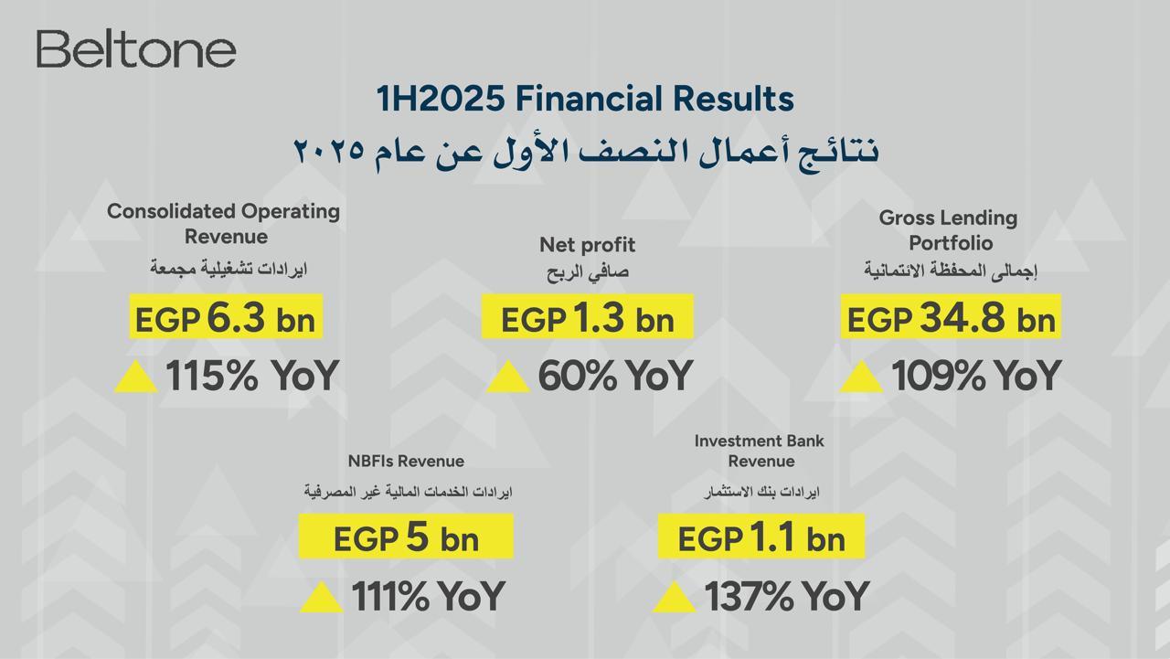 • بلتون القابضة – صافي الربح: تخطى 1.3 مليار جنيه، بنمو سنوي 60%.