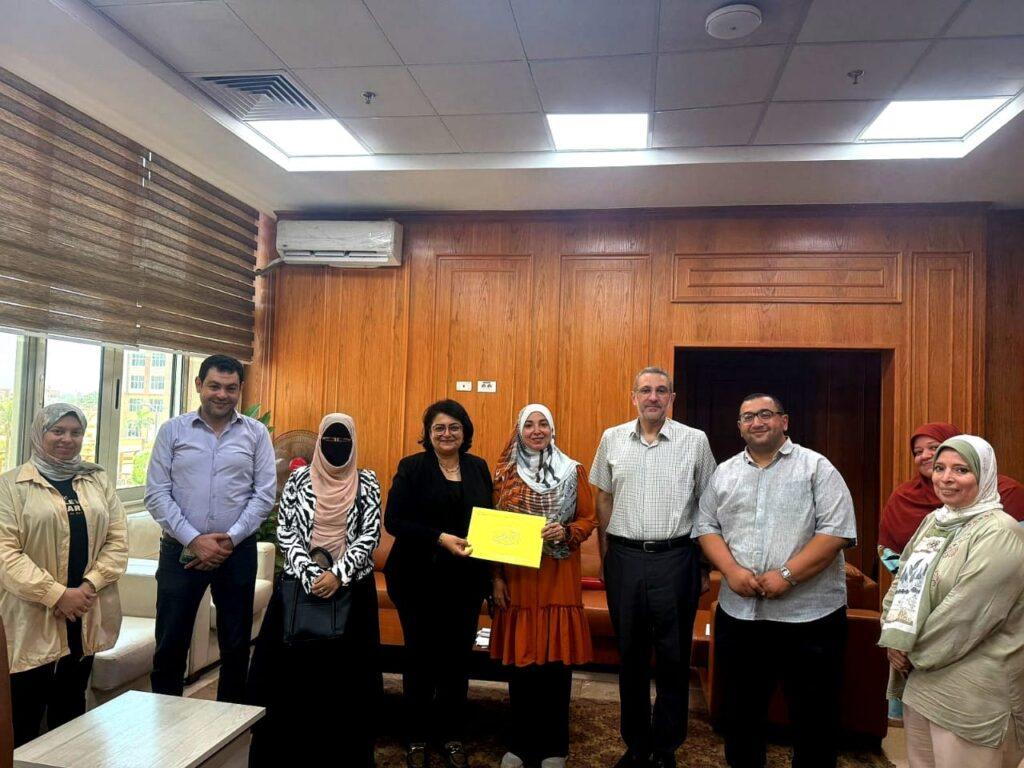 وقامت الدكتورة نانسى أسعد بتكريم الدكتورة مروة محمد سراج الدين على جهودها فى تنفيذ الورشة التدريبية وذلك بحضور الدكتور أشرف بلبع عميد القطاع الطبى وعدد من مديرى ومنسقى البرامج ومدير إدارة رعاية الطلاب بالجامعة.