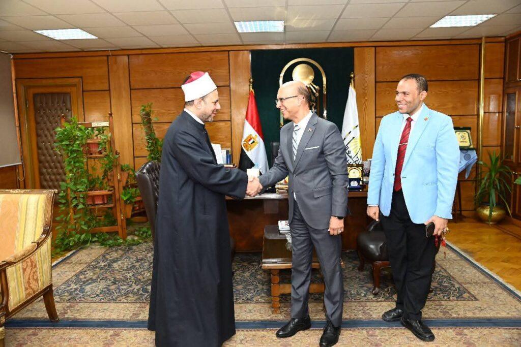 وثمّن الدكتور حسن يحيى الشراكة الممتدة مع جامعة أسيوط، مشيدًا بمكانتها العلمية وريادتها الأكاديمية، ومثمنًا نجاحها في استضافة فعاليات “أسبوع الدعوة الإسلامية” في نوفمبر الماضي تحت عنوان: «العقيدة وبناء الإنسان». كما أعرب عن تطلعه لتعزيز التعاون خلال الفترة المقبلة عبر ندوات ولقاءات تثقيفية ودعوية، تنفيذًا لتوجيهات فضيلة الإمام الأكبر الدكتور أحمد الطيب، شيخ الأزهر الشريف، بضرورة تكثيف البرامج التوعوية والدعوية لنشر رسالة الأزهر الوسطية في المجتمع.
