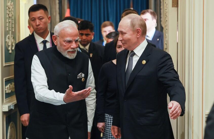 أشاد الرئيس فلاديمير بوتين خلال لقائه رئيس الوزراء الهندي ناريندرا مودي على هامش قمة شنغهاي للتعاون في الصين بالشراكة الاستراتيجية بين روسيا والهند، ووتيرة التعاون التجاري بينهما.