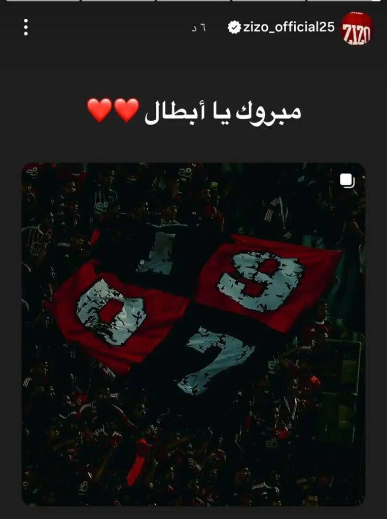 كما نشر زيززو صورة عبر حسابه بموقع “إنستغرام” لزميله محمود حسن “تريزيغيه” موجها له الشكر على هدف الفوز وعلق برسالة قائلا: “مبروك يا أبطال”.