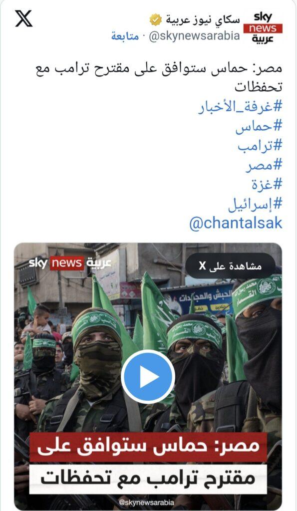 والثلاثاء أمهل الرئيس الأميركي حماس “3 إلى 4 أيام” لقبول الخطة، متوعدا إياها بالدمار في حال رفضتها.