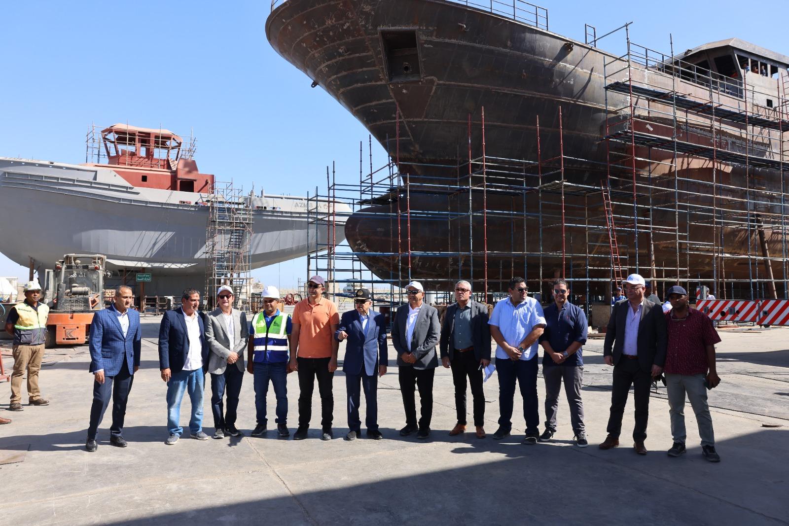 عقب ذلك وبانتهاء مراسم تدشين القاطرتين، تفقد الفريق أسامة ربيع رئيس الهيئة أعمال بناء سفن الصيد أعالي بحار للتعرف على سير العمل حيث تم الانتهاء من تجميع الأجزاء المعدنية المكونة لبدن ٣ سفن صيد فيما يجري العمل حاليا على تجميع سفينة الصيد الرابعة وذلك من إجمالي ١٢ سفينة صيد مماثلة لسفينة الصيد “رزق ١” سيتم بناؤهم تباعا.