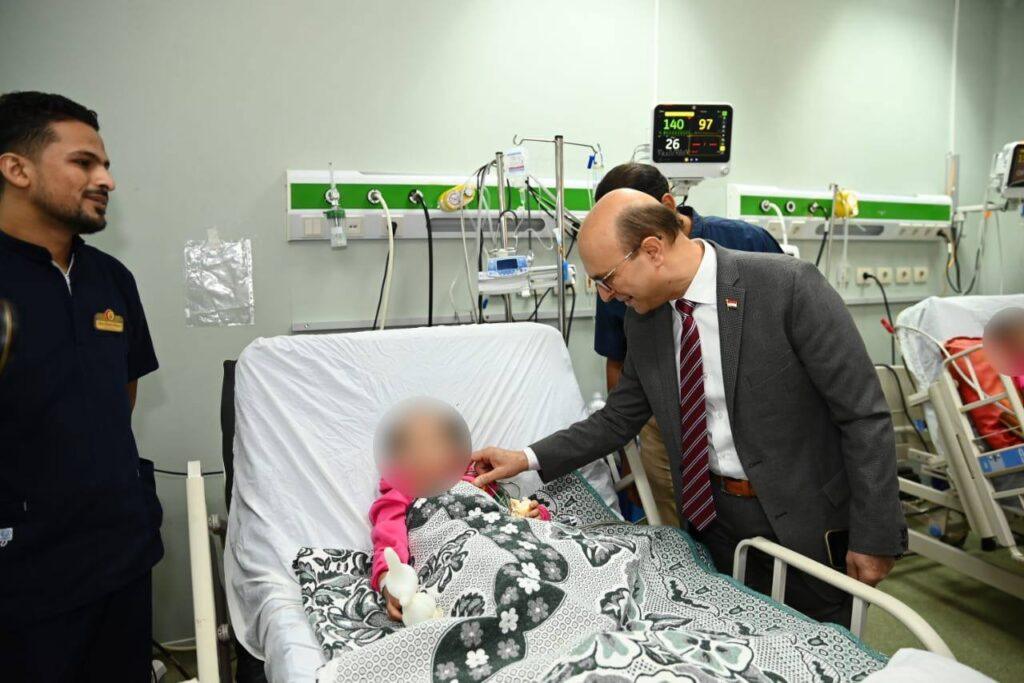 صباح اليوم رئيس جامعة أسيوط فى زياره لأطفال حادث قرية منقباد بمستشفى الإصابات (صور)