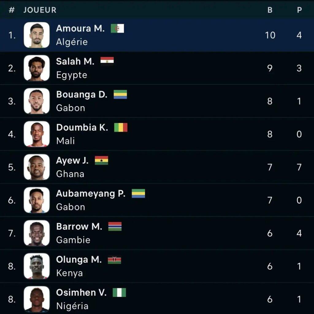 واستغل النجم الجزائري محمد الأمين عمورة غياب صلاح ليحسم صدارة ترتيب هدافي تصفيات أفريقيا لكأس العالم 2026 برصيد 10 أهداف.