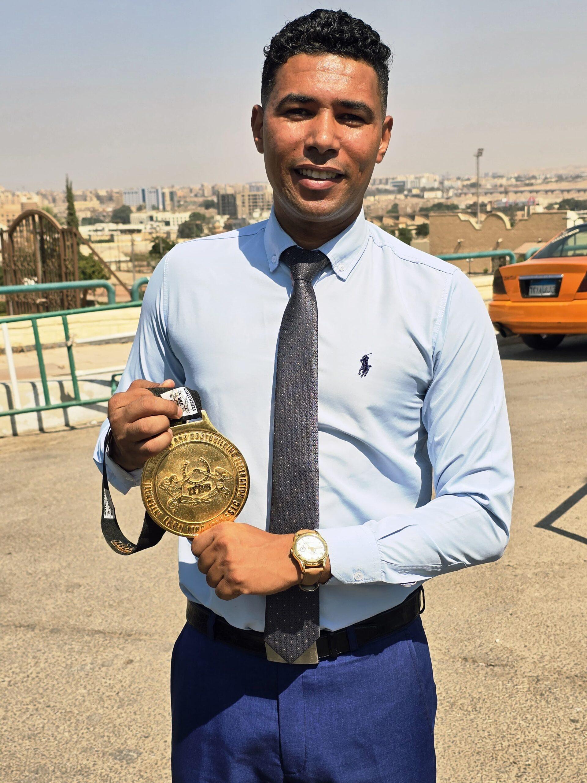 بطل العالم مصطفى أبو الطاهر يستعد لإلقاء الكلمة الافتتاحية في مؤتمر الرياضة تجمعنا دعمًا لفلسطين