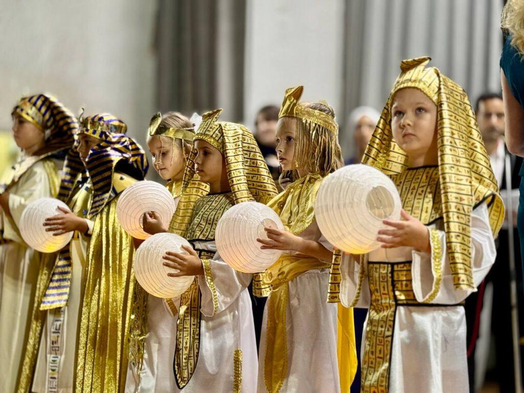 قدّم فنانون من دار الأوبرا المصرية، وفرقة كالينكا الغنائية، وفرقة “Star dance” من الغردقة، وطلاب استوديوهات الموسيقى والباليه، وأعضاء نادي الشباب في البيت الروسي بالقاهرة، عروضهم في قاعة تشايكوفسكي للحفلات الموسيقية. وقد تم تنظيم الاحتفالية تحت قيادة وإشراف فني المايسترو لويزا بليدجانس.