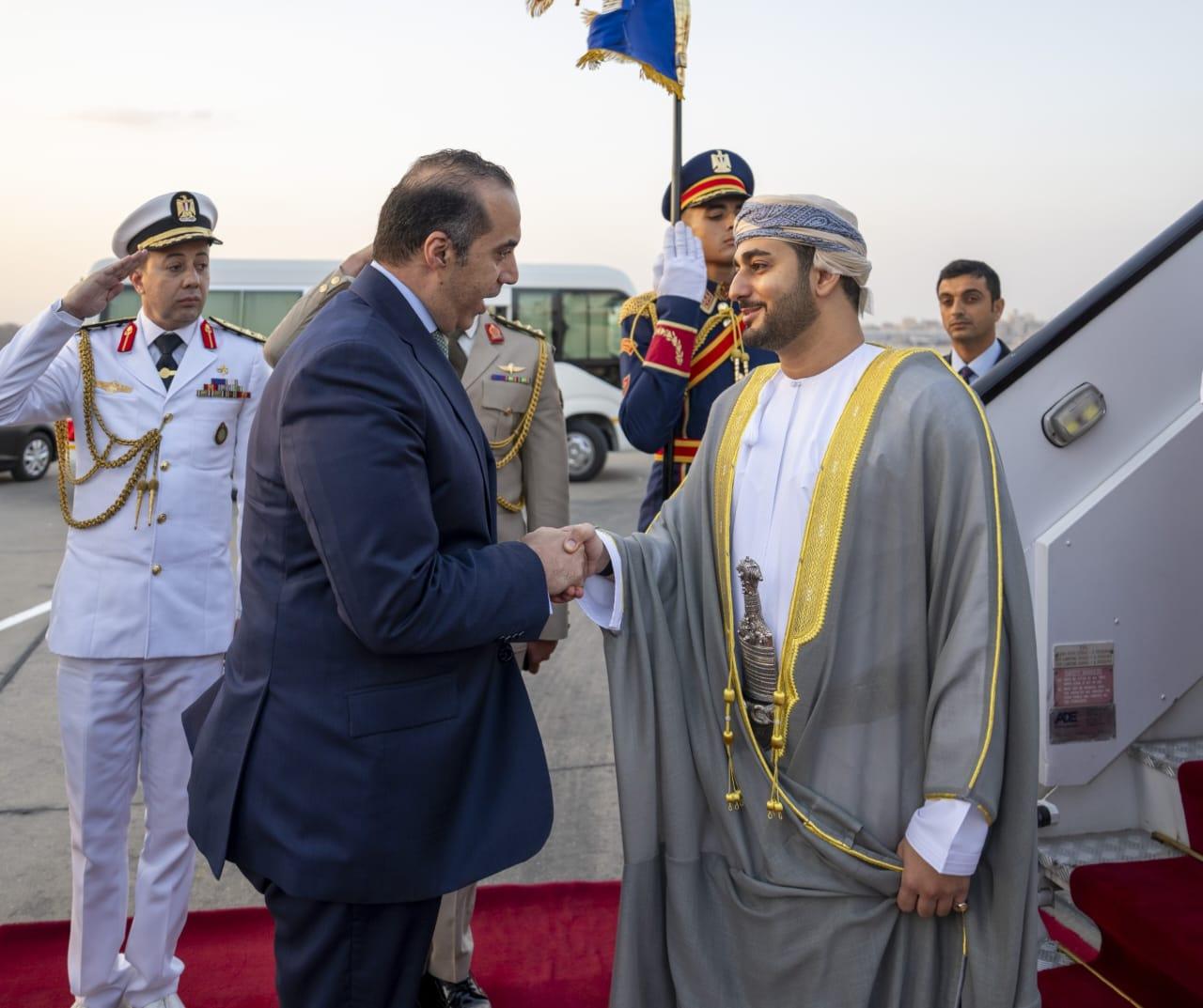 وكان في استقباله والوفد المرافق له لدى وصولهم القاعة الرئاسية بمطار القاهرة الدولي، المستشار محمود فوزي وزير الشؤون النيابية والقانونية والتواصل السياسي، والسفير عبدالله بن ناصر الرحبي سفير سلطنة عُمان المعتمد لدى جمهورية مصر العربية ومندوبها الدائم لدى جامعة الدول العربية وعدد من المسؤولين في الحكومة المصرية وأعضاء السفارة العُمانية بالقاهرة.