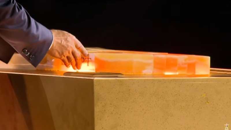 وفي لفتة رمزية، وضع السيسي القطعة الأخيرة التي تحمل اسم “مصر” في النموذج المصغر للمتحف، والذي تتكوّن أجزاؤه من أسماء الدول المشاركة في الافتتاح، معلنا بذلك الافتتاح الرسمي لهذا الصرح الحضاري العالمي.