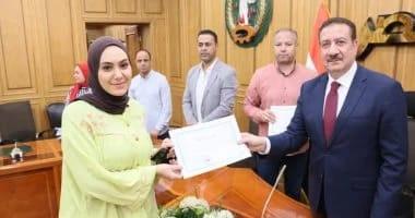 سلم اللواء إبراهيم أبو ليمون محافظ المنوفية شهادات تدريب ومكافأة مالية لـ30 فتاة من خريجات البرنامج التدريب المهنى على مهن التفصيل والكهرباء والتى نفذتها مديرية العمل من خلال الوحدة التدريبية المتنقلة بقرية سلامون قبلى التابعة لمركز ومدينة الشهداء، بحضور عماد سعيد مدير مديرية العمل بالمحافظة، ذلك فى إطار الجهود التى تبذلها الدولة فى تنفيذ العديد منالمبادرات لتنمية مهارات الشباب وتعزيز قدراتهم وتأهيلهم بما يتوافق مع متطلبات سوق العمل تماشياً مع أهداف ومحاورالجمهورية الجديدة ووفقاً لرؤية مصر 2030.
