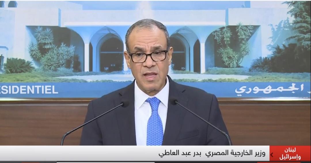 خلال زيارته إلى بيروت، أكد وزير الخارجية المصري بدر عبد العاطي دعم القاهرة لـ”حصر السلاح بيد الدولة اللبنانية”، مشددا على ضرورة الانسحاب الإسرائيلي الكامل من جميع الأراضي اللبنانية وتطبيق القرار الأممي 1701 بشكل فوري.
