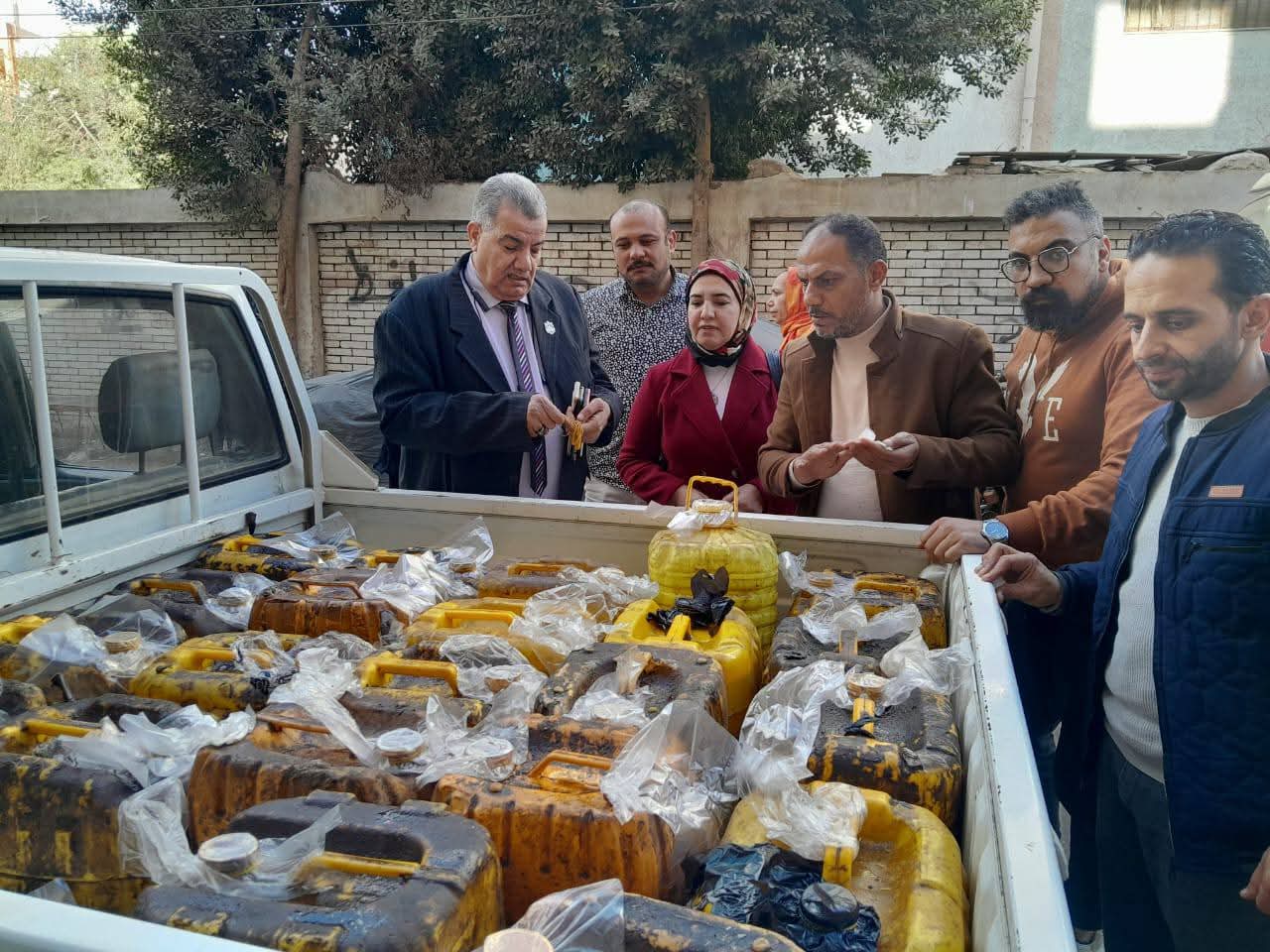 - محضر ضد محل سرجة لحيازته كمية ١٠٠ لتر زيت طعام و كمية ٢٠ لتر خل (مجهول المصدر )