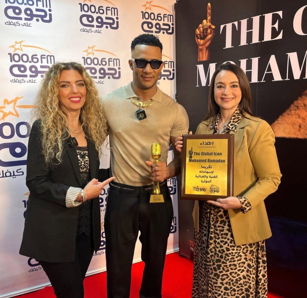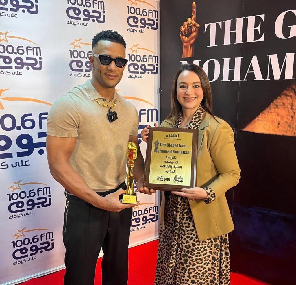وكرّمت هالة حجازي، المدير التنفيذي والعضو المنتدب لشركة النيل للإنتاج الإذاعي المالكة لإذاعة “نجوم ونايل إف.إم”، The Global Icon النجم محمد رمضان، اليوم الخميس، قبل بداية لقائه مع جيهان عبد الله في حلقة خاصة من برنامج «أجمد 7» عبر «نجوم إف.إم»، وأهدت هالة حجازي The Global Icon النجم محمد رمضان ميكروفون «نجوم إف.إم» الذهبي تقديرًا لإسهاماته الفنية والغنائية المؤثرة.