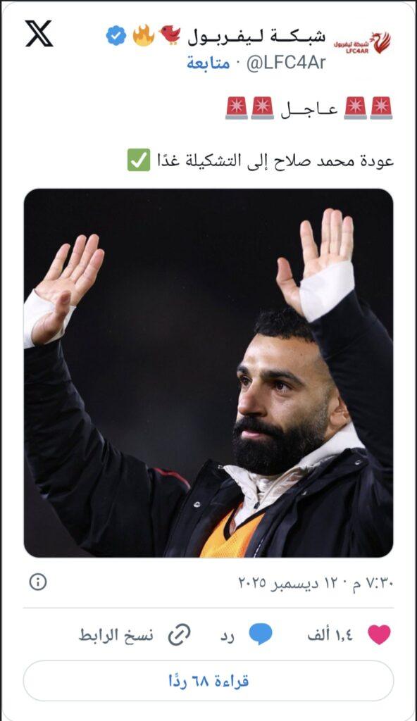 يقود صلاح منتخب مصر في نهائيات كأس أمم إفريقيا التي تنطلق في 21 ديسمبر بالمغرب وفي حال تألقه وقيادته “الفراعنة” للتتويج باللقب وإنهائه البطولة كأحد أبرز نجومها فإن ذلك سيعزز من قيمته الفنية ويضع إدارة “الريدز” ومدربه في موقف محرج خاصة إذا ثبت أن تراجع مستواه مرتبط بتراجع أداء الفريق ككل.