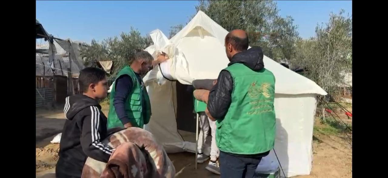 و توجهت الفرق الميدانية للمركز السعودي للثقافة والتراث – الشريك المنفذ لمركز الملك سلمان للإغاثة في قطاع غزة- إلى موقع العائلة، وجرى تأمين خيمة وإقامتها في المكان المناسب لتكون مأوى يحمي الأسرة من قسوة الطقس وتقلباته، إلى جانب تقديم الفرش والمستلزمات اليومية الأساسية والسلال الغذائية والملابس الشتوية للأطفال.