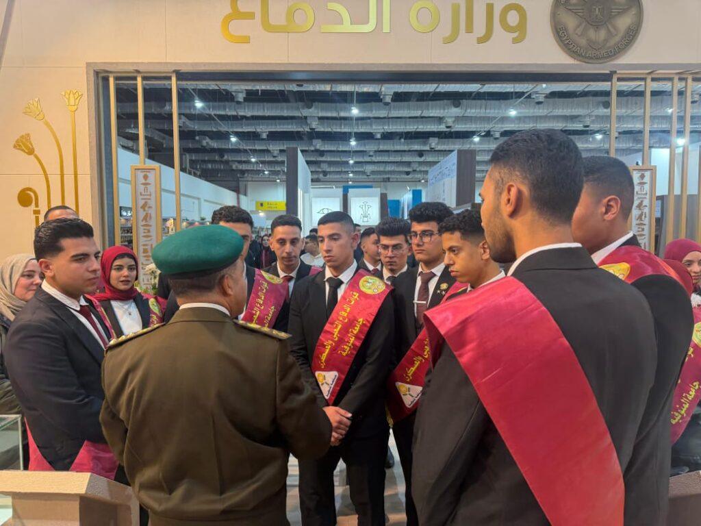 وتضمنت الزيارة جولة بجناح وزارة الدفاع، حيث التقى الطلاب بعدد من قيادات القوات المسلحة، وعلى رأسهم اللواء ياسر وهبة المتحدث العسكري الرسمي، واستمعوا إلى شرح تفصيلي حول مكونات الجناح ودور القوات المسلحة وإنجازاتها وخدماتها الوطنية،