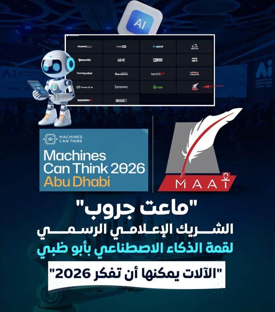 اختيار «ماعت جروب» شريكًا إعلاميًا لقمة الذكاء الاصطناعي «الآلات يمكنها أن تفكر 2026» بأبوظبي
