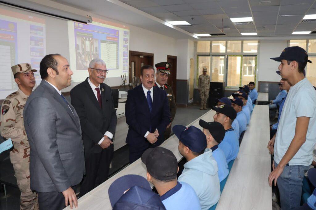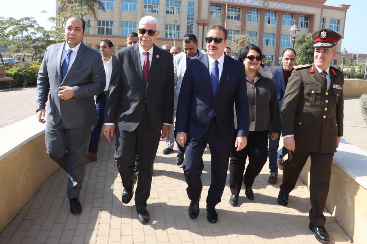 جولة تفقدية لرئيس جامعة المنوفية ومحافظ المنوفية بجامعة المنوفية الأهلية لمتابعة انتظام دورات التربية العسكرية للبنين والبنات