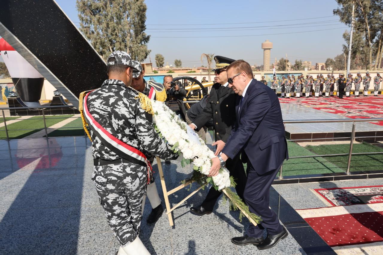 محافظ المنوفية ومدير الأمن يضعان إكليل الزهور على النصب التذكارى لشهداء الشرطة