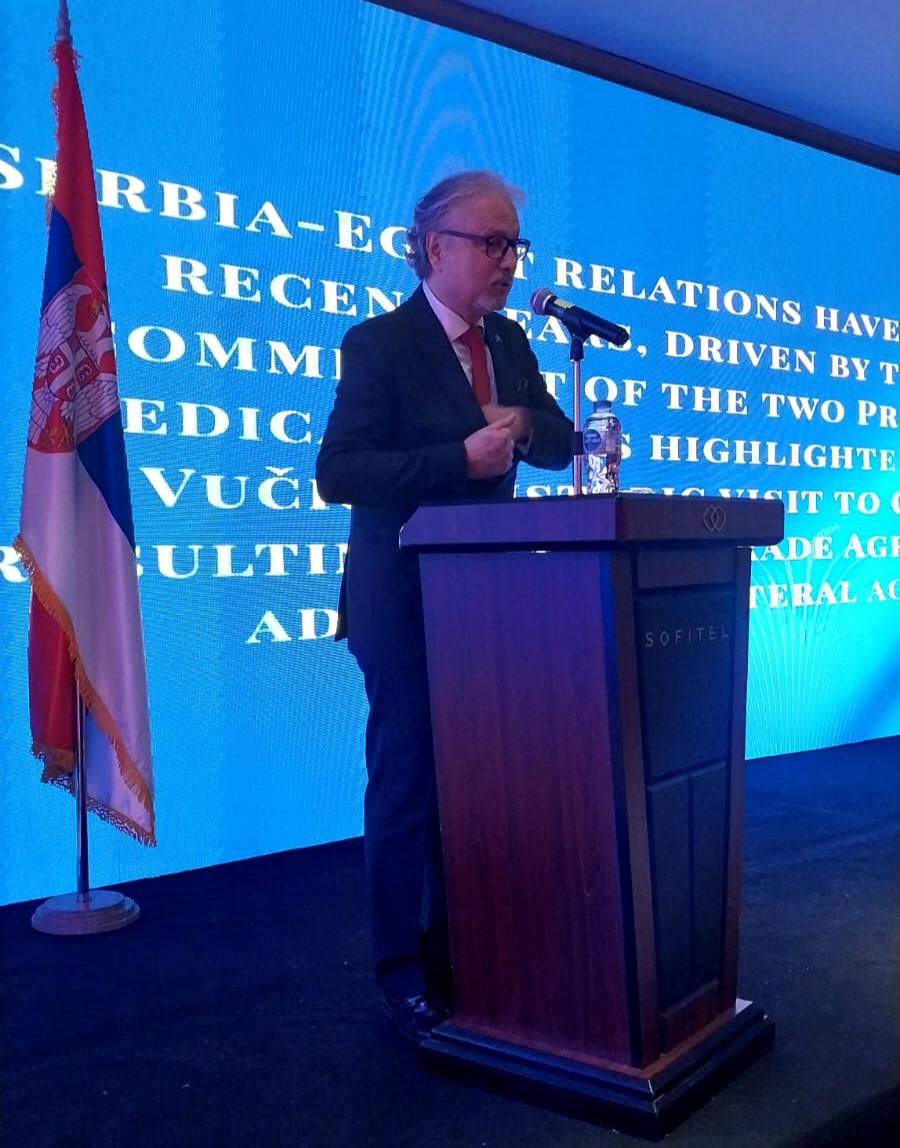 أكد سفير صريبا بالقاهرة ميروسلاف تشيستوفيس قوة العلاقات بين مصر وصريبا والتي شهدت التوقيع علي الشراكة الاستراتيجية الشاملة خلال الزيارة التاريخية للرئيس عبد الفتاح السيسي لبلجراد عام 2022 ودخلت حيز التنفيذ عام 2025 وكذلك التوقيع علي اتفاقية التجارة الحرة خلال زيارة الرئيس الصريبي للقاهرة عام 2024.
