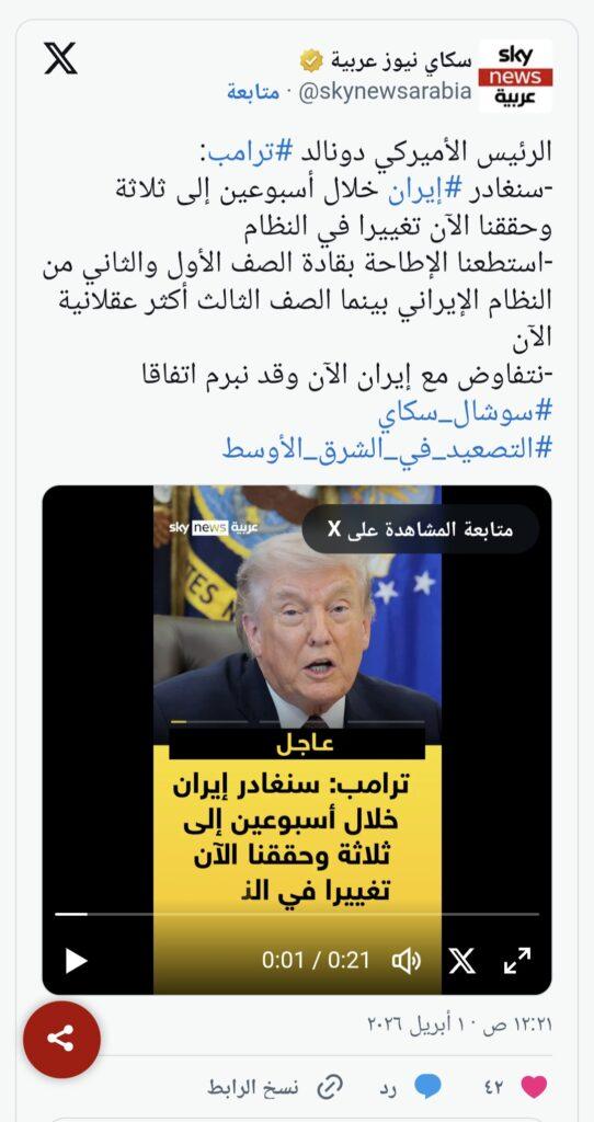 وكان هذا أوضح تصريح يدلى به ترامب حتى الآن بشأن نيته إنهاء حرب بدأتها الولايات المتحدة وإسرائيل على إيران قبل نحو شهر.