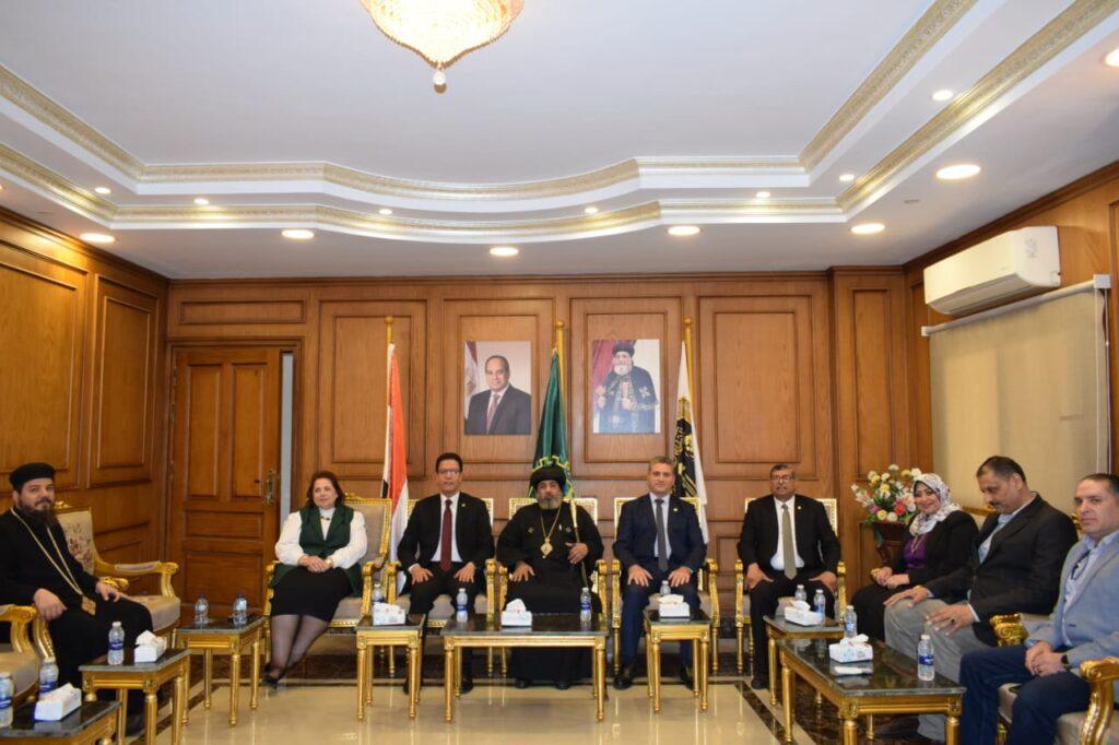 قدم الدكتور ناصر الجيزاوي رئيس جامعة بنها ، التهنئة لنيافة الأنبا مرقص مطران شبرا الخيمة بمطرانية شبرا الخيمة ، ونيافة الأنبا نوفير أسقف شبين القناطر بمطرانية شبين القناطر ، بمناسبة الاحتفال بعيد القيامة المجيد.