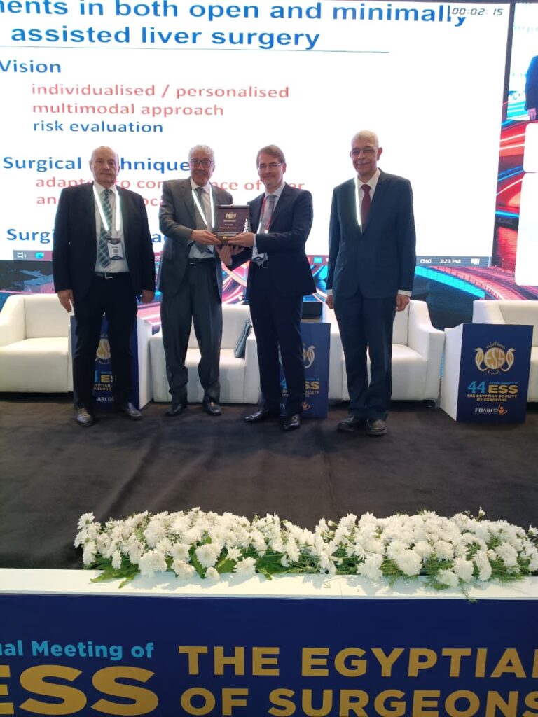 وشملت الجلسات التي ترأسها رئيس الجامعة جلسة بعنوان “Advances in Liver Transplantation: Robots and Machines” والتي ناقشت أحدث التقنيات في مجال زراعة الكبد باستخدام الروبوتات والآلات الحديثة، إلى جانب الجلسة التذكارية “Minimal Invasive Living Donor Surgery for All” التي تناولت مستقبل جراحات المتبرعين الأحياء طفيفة التوغل، وكذلك جلسة “MDT in Triple Negative Breast Cancer” التي ركزت على العلاج متعدد التخصصات في حالات سرطان الثدي ثلاثي السلبية، بالإضافة إلى ترؤسه جلسة مسابقة نهائي دوري الجراحة بين فرق الجامعات المصرية، والتي شهدت مستوى متميزًا من المنافسة بين الطلاب.