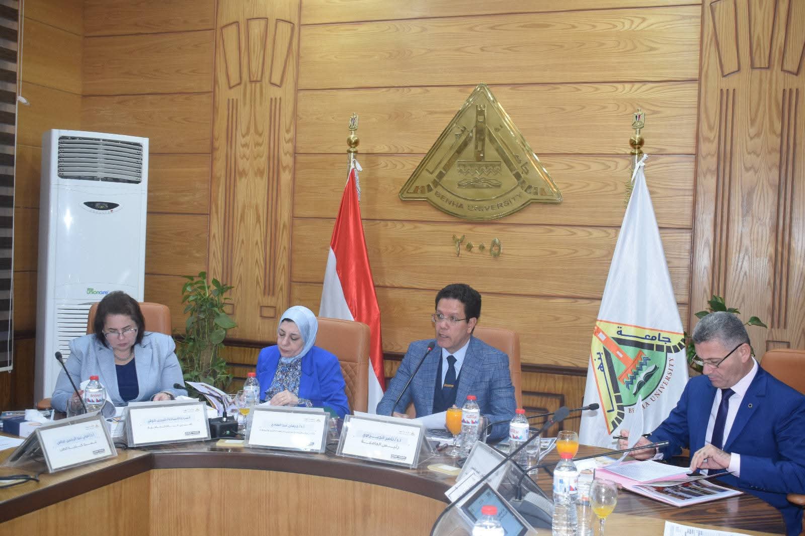 عقد مجلس جامعة بنها اجتماعه برئاسة الدكتور ناصر الجيزاوي رئيس جامعة بنها، وبحضور الدكتورة جيهان عبد الهادي نائب رئيس الجامعة لشئون الدراسات العليا والبحوث ، والدكتور طه عاشور نائب رئيس الجامعة لشئون خدمة المجتمع وتنمية البيئة ، والسادة أعضاء مجلس الجامعة.