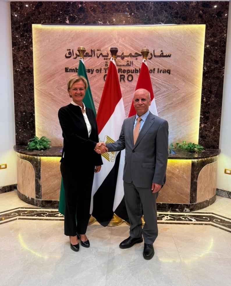 استقبل سفير جمهوريةِ العراق لدى جمهوريةِ مصر العربية ومندوبُها الدائمُ لدى جامعةِ الدولِ العربية، الدكتور قحطان طه خلف، سفيرةَ الاتحادِ الأوروبي لدى جمهوريةِ مصر العربية، السيدة أنجلينا إيخهورست، في مكتبه بمبنى السفارة.